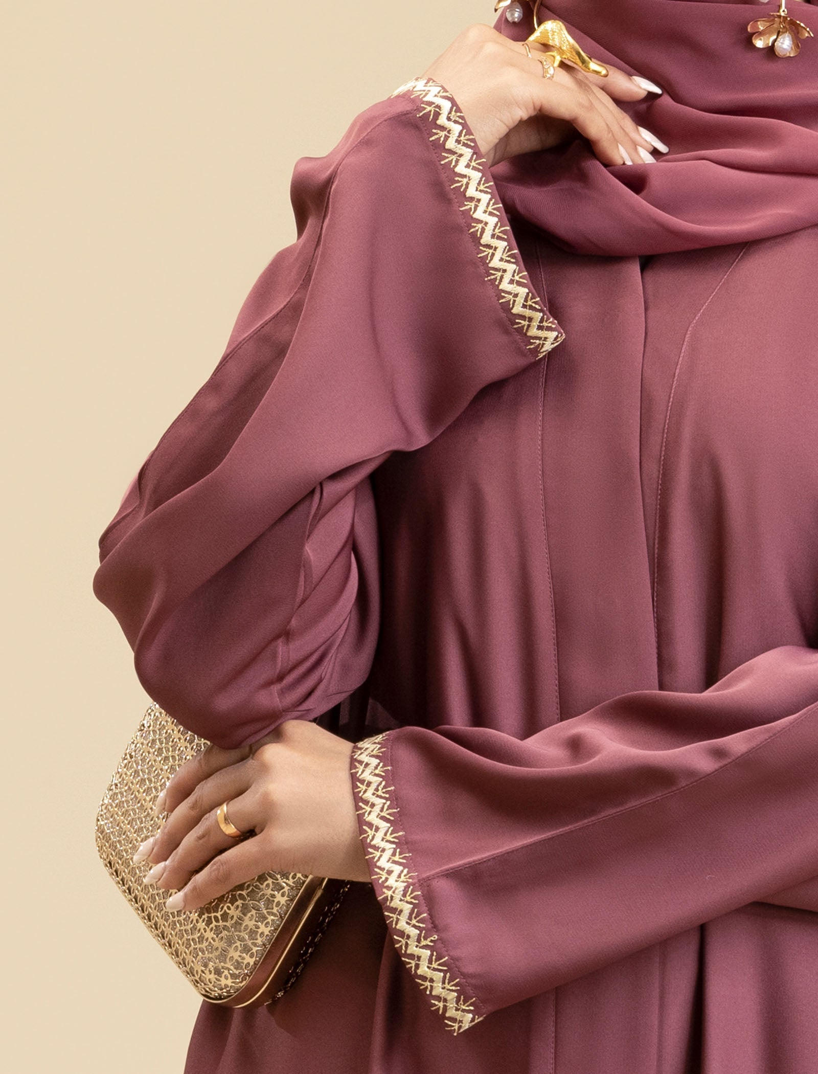 The Daisy Charm abaya features intricate embroidery on the front and sleeves, offering a delicate yet vibrant design. The color is perfectly suited for the summer season, capturing the essence of spring with its thoughtfully chosen embroidery design and colors.