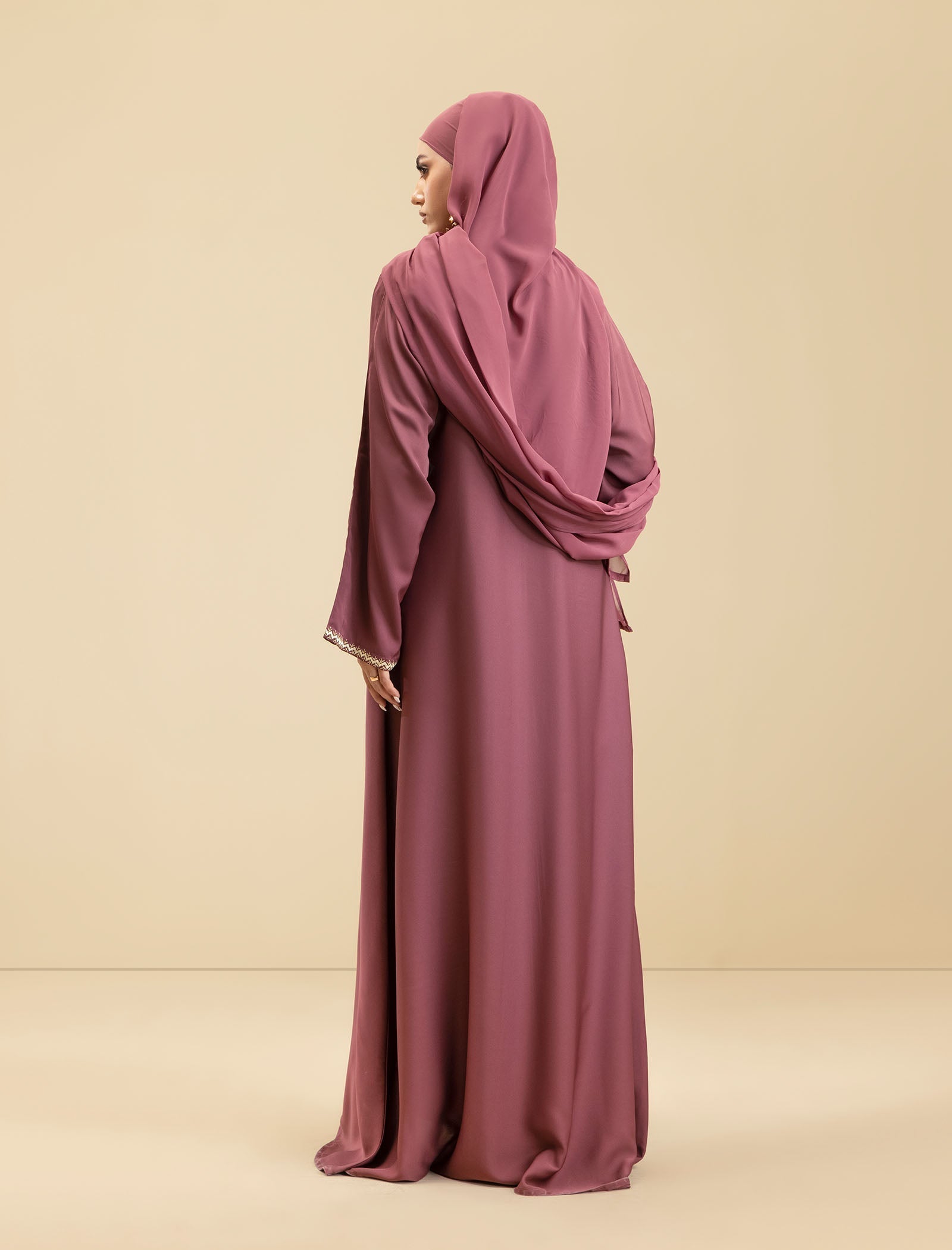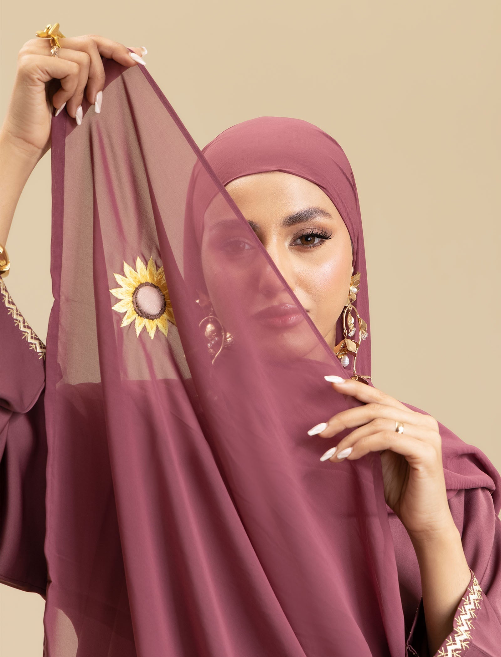 Complements the abaya with a standard-size hijab, giving you a complete and polished look.